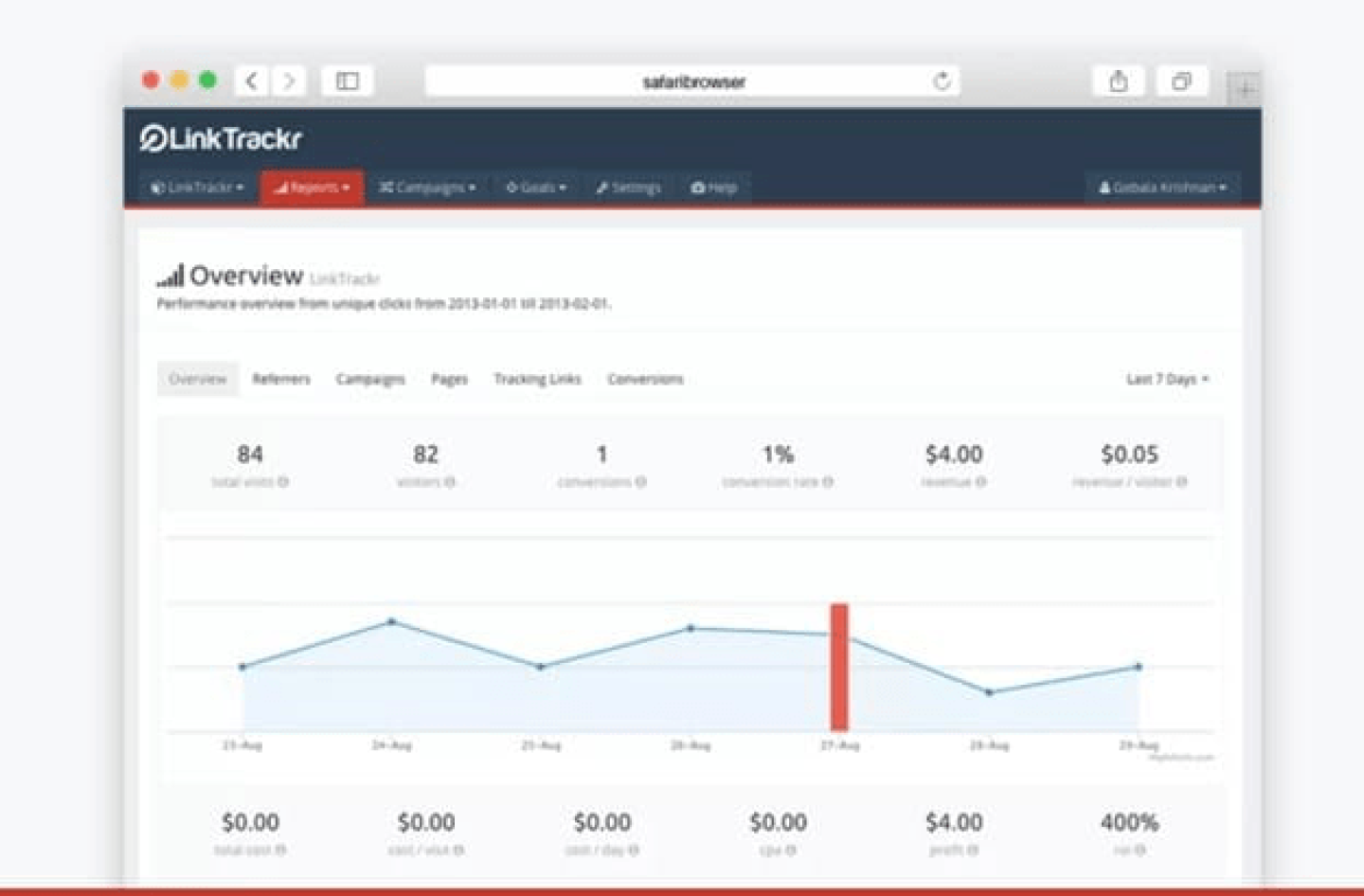 LinkTrackr is the go-to link tracking tool for affiliates in all kinds of niches. It helps in cloaking/creating, tracking, and split testing links simultaneously. On top of that, it comes with a suite of additional features to help businesses grow their reach steadily.