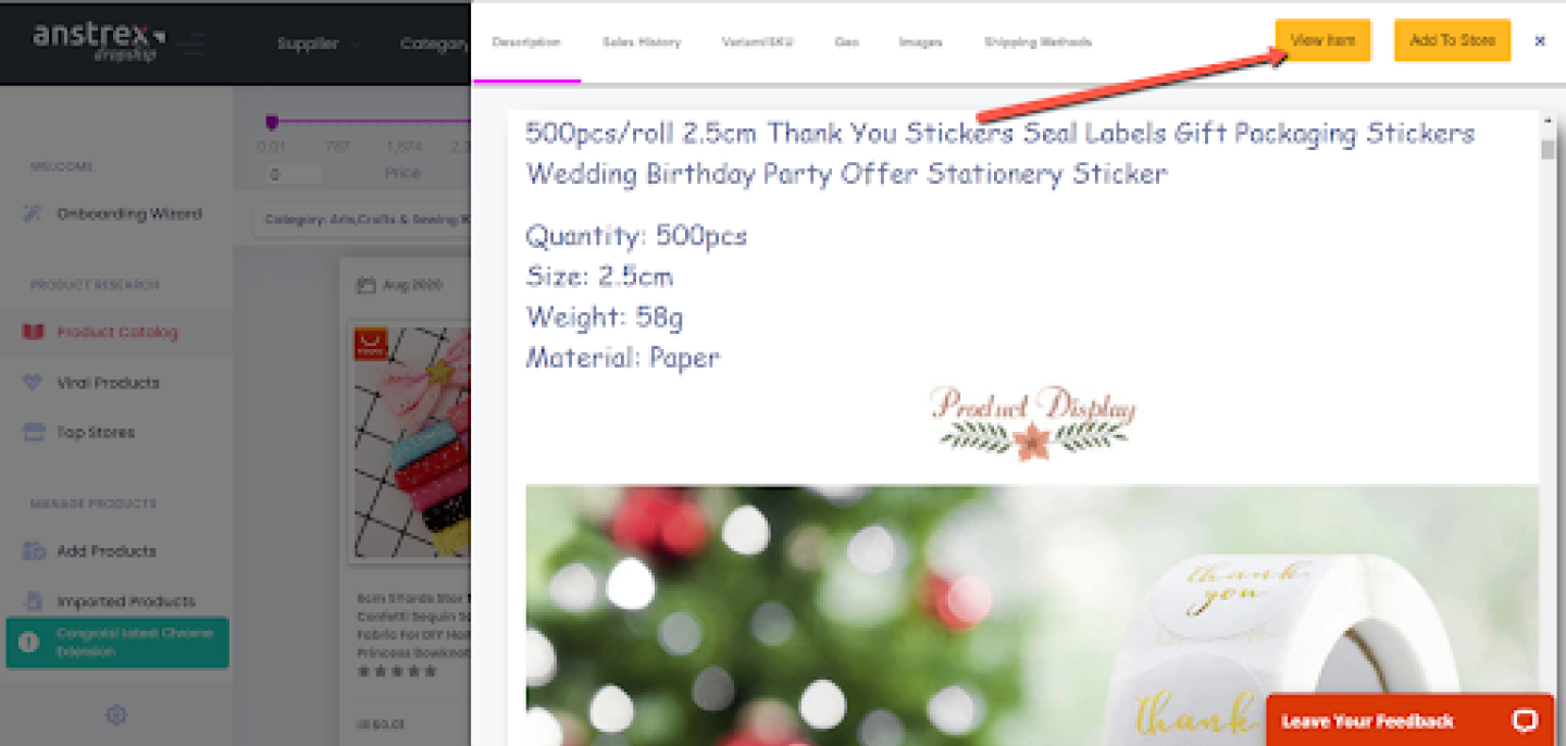 The supplier page for that product will open up. Once there, you can click on the Anstrex extension in your browser.