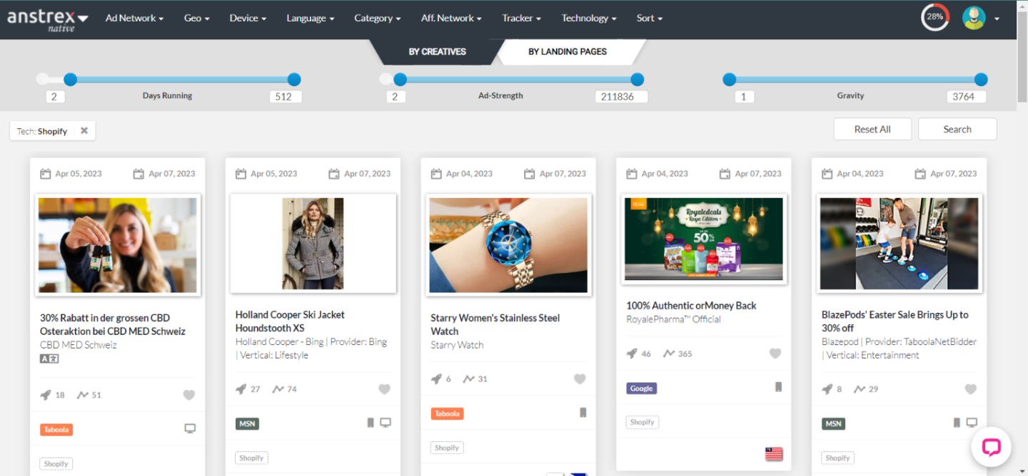 Anstrex can help you discover what your competitors are doing regarding native advertising. By analyzing their ad copy, creatives, and landing pages, you can gain insight into what works and doesn't. This information can help you create better ads and improve your e-commerce marketing strategy.