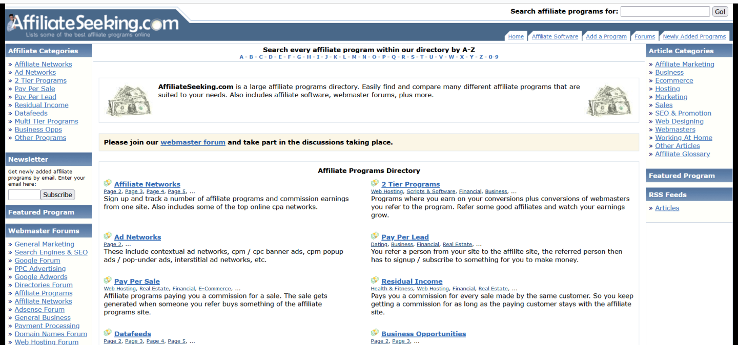 Affiliate Seeking — это сеть с бесплатным доступом, которая работает как форум, позволяя продавцам создавать всевозможные партнёрские программы и находить заинтересованных партнёров.