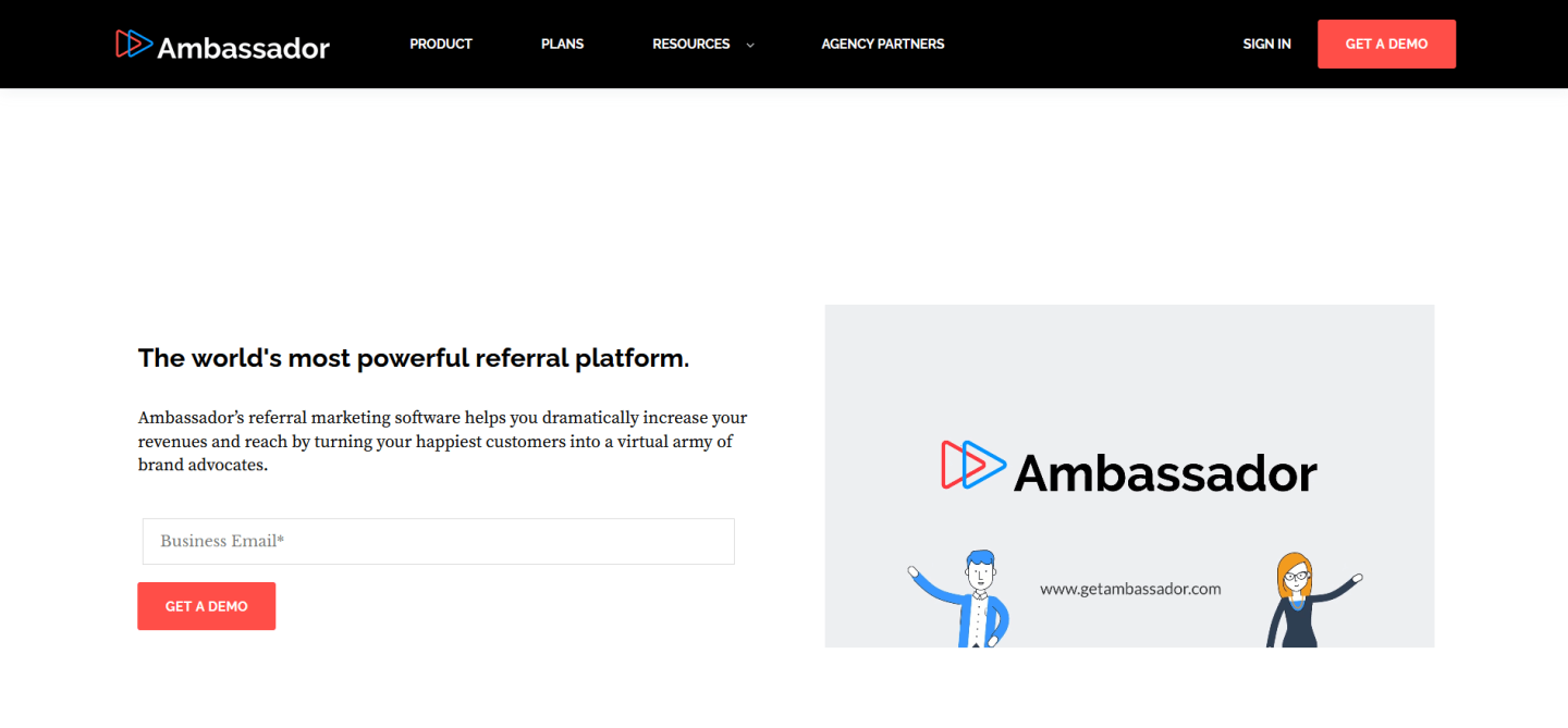 Компания GetAmbassador была основана в 2010 году и зарекомендовала себя как одна из ведущих партнёрских сетей в сфере цифрового маркетинга. Расширенный набор функций позволяет продавцам быстро находить, регистрировать, отслеживать и вознаграждать партнёров.