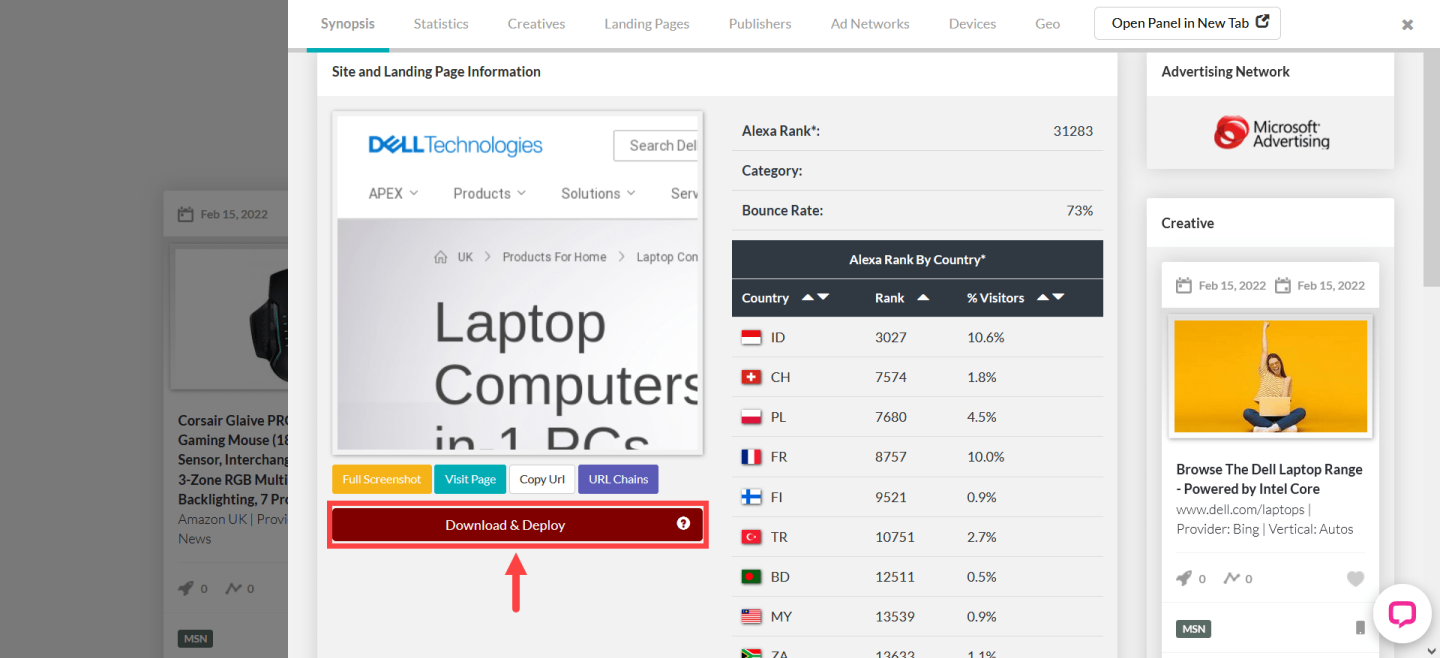 Он обладает отличными функциями поиска и также предлагает инструмент целевой страницы. Вы можете скопировать любую целевую страницу с помощью простой опции “Скачать и развернуть”, которая появляется под каждой целевой страницей на Anstrex.