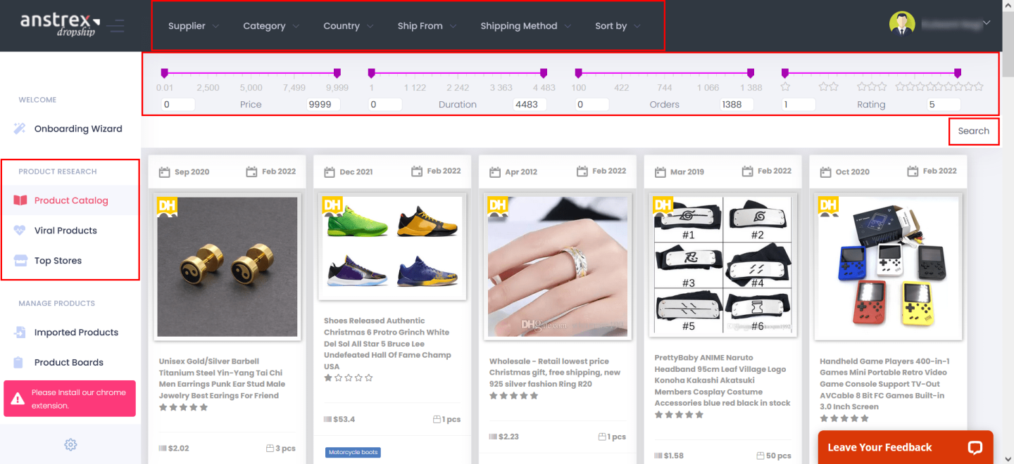 С более чем шестью миллионами товаров, представленных на платформе, Anstrex может похвастаться непревзойдённым каталогом поставщиков дропшиппинга.