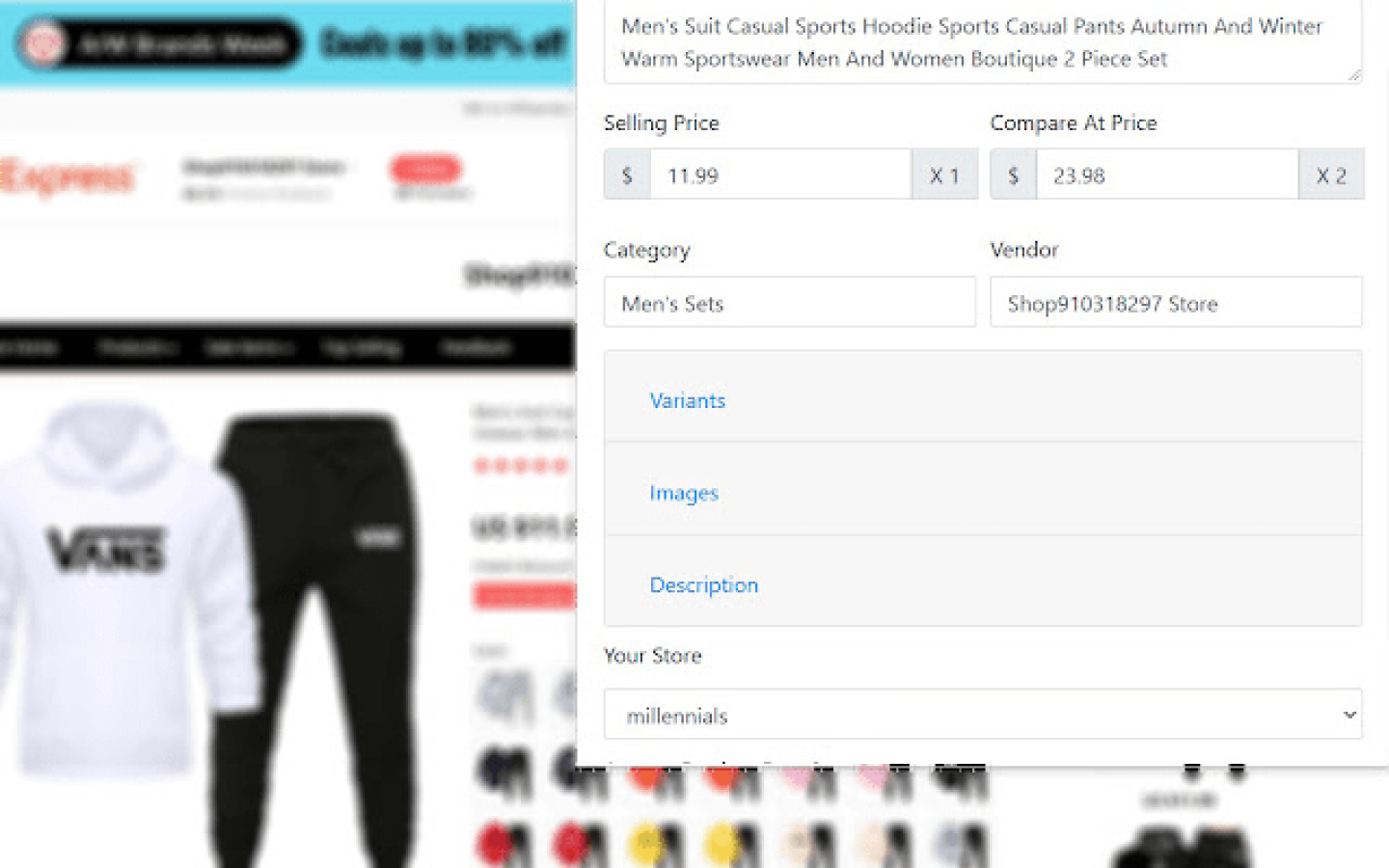 Вы будете перенаправлены на сайт поставщика, где с помощью расширения Anstrex Dropship для Chrome сможете напрямую добавить товар на свой сайт электронной коммерции.