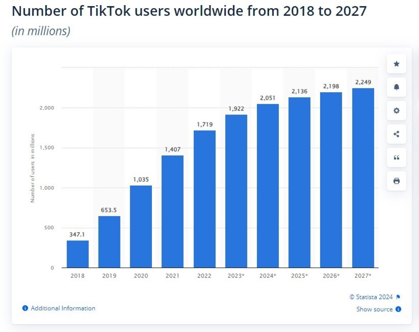 Согласно отчётам, пользователи могут проводить в среднем 95 минут в день (в глобальном масштабе), просматривая видео с танцами, комедийные ролики и информационный контент — уровень вовлечённости, который конкурирует даже с наиболее устоявшимися платформами социальных сетей.