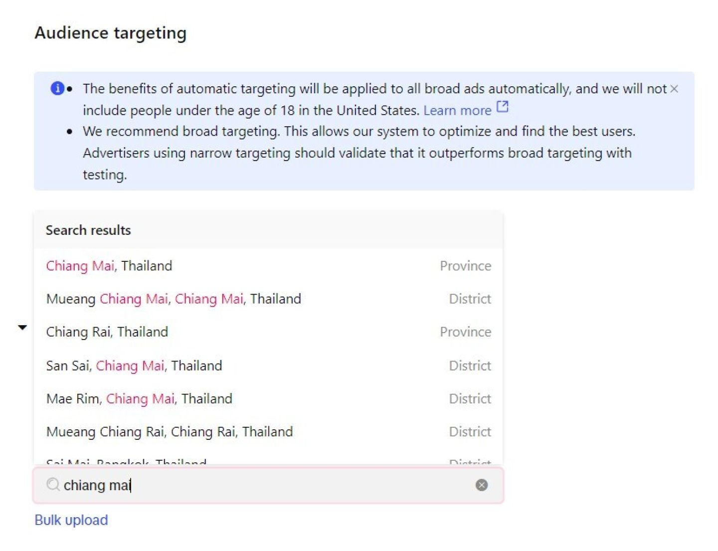 Важно: однако следует учитывать, что вы не можете рекламироваться пользователям по всему миру — вам разрешено нацеливаться только на пользователей из определенного региона, и все это зависит от страны, в которой зарегистрирован ваш аккаунт. Чтобы узнать больше о доступных для таргетинга странах в зависимости от местоположения вашего бизнеса, нажмите здесь.