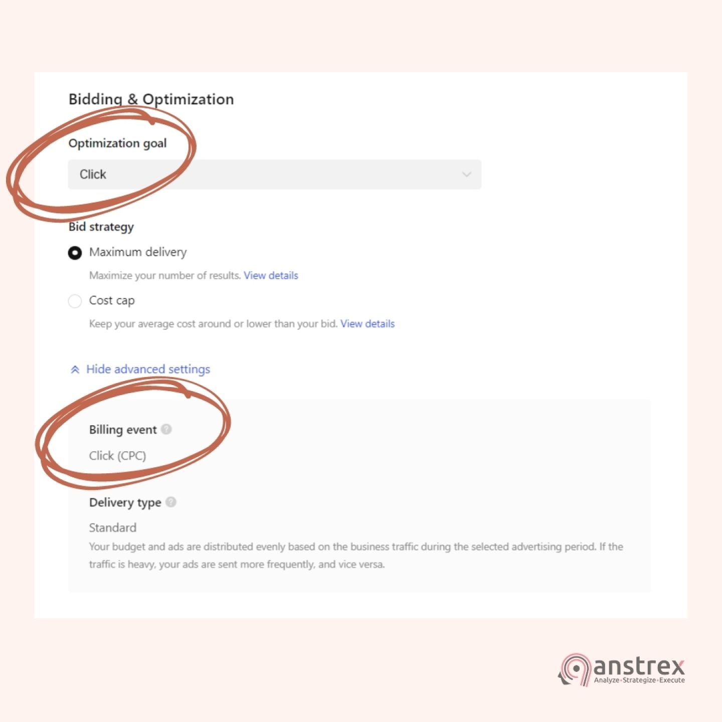 Этот вариант ставок предоставляет компаниям больший контроль над их ROI и позволяет более точно отслеживать отдачу от рекламных расходов. Это можно сделать, выбрав оптимизацию по конверсиям и установив предел стоимости за конверсию.