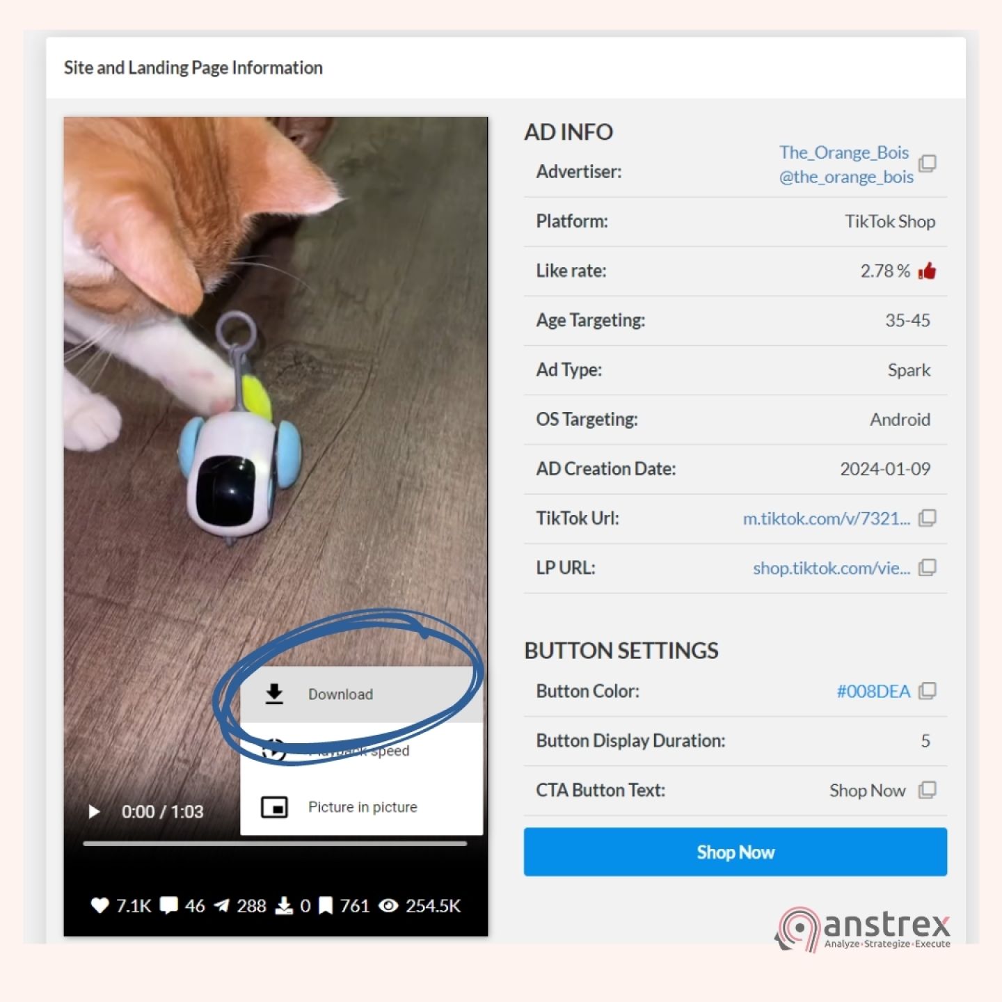 С помощью таких инструментов, как Anstrex, вы теперь можете загружать реальные видео конкурентов прямо из TikTok, получая осязаемый план успеха для своей кампании.