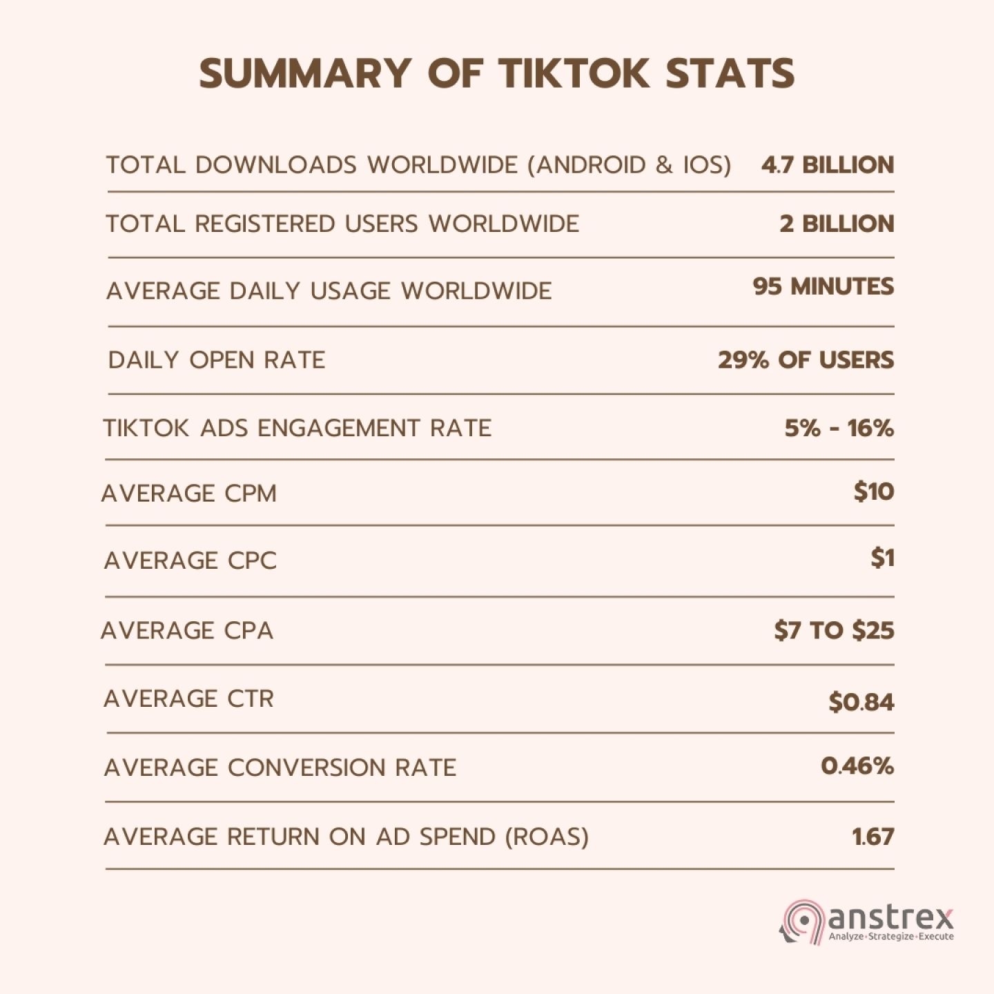Средний CPA для рекламы в TikTok зависит от страны, но обычно колеблется от 7 до 20 долларов США.