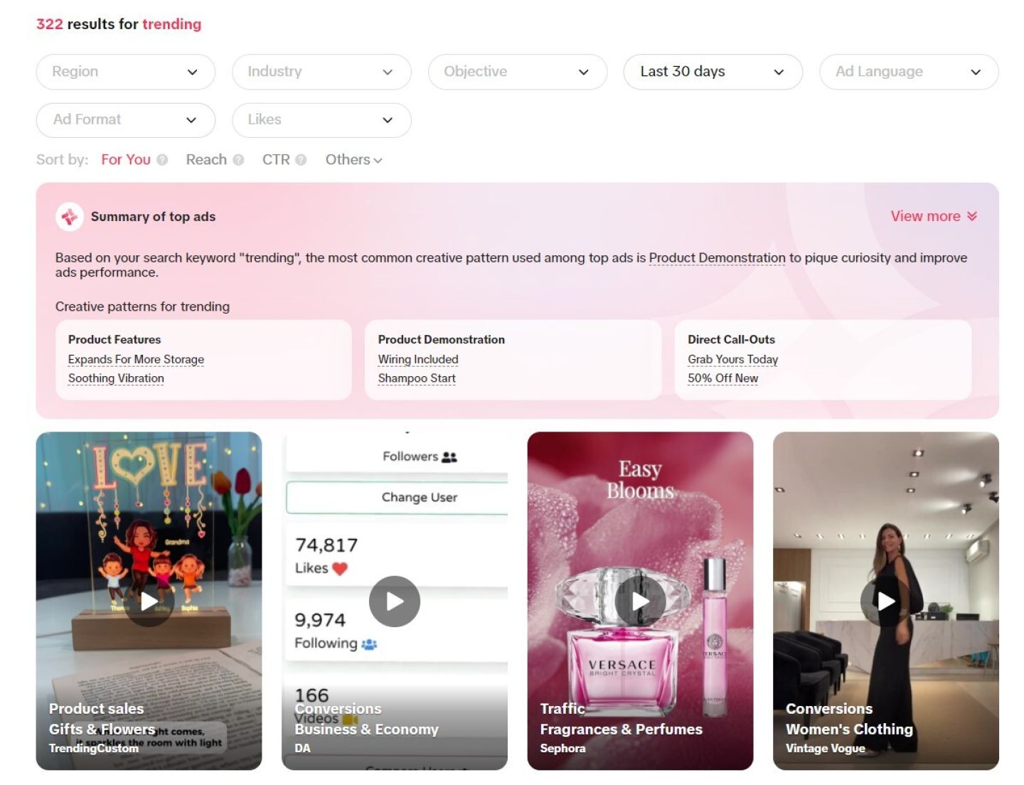 Это особенно эффективно для выявления популярных товаров или тем. Эти видео уже доказали, что они находят отклик у зрителей, поэтому могут дать ценные подсказки о том, какие товары могут заинтересовать вашу целевую аудиторию.