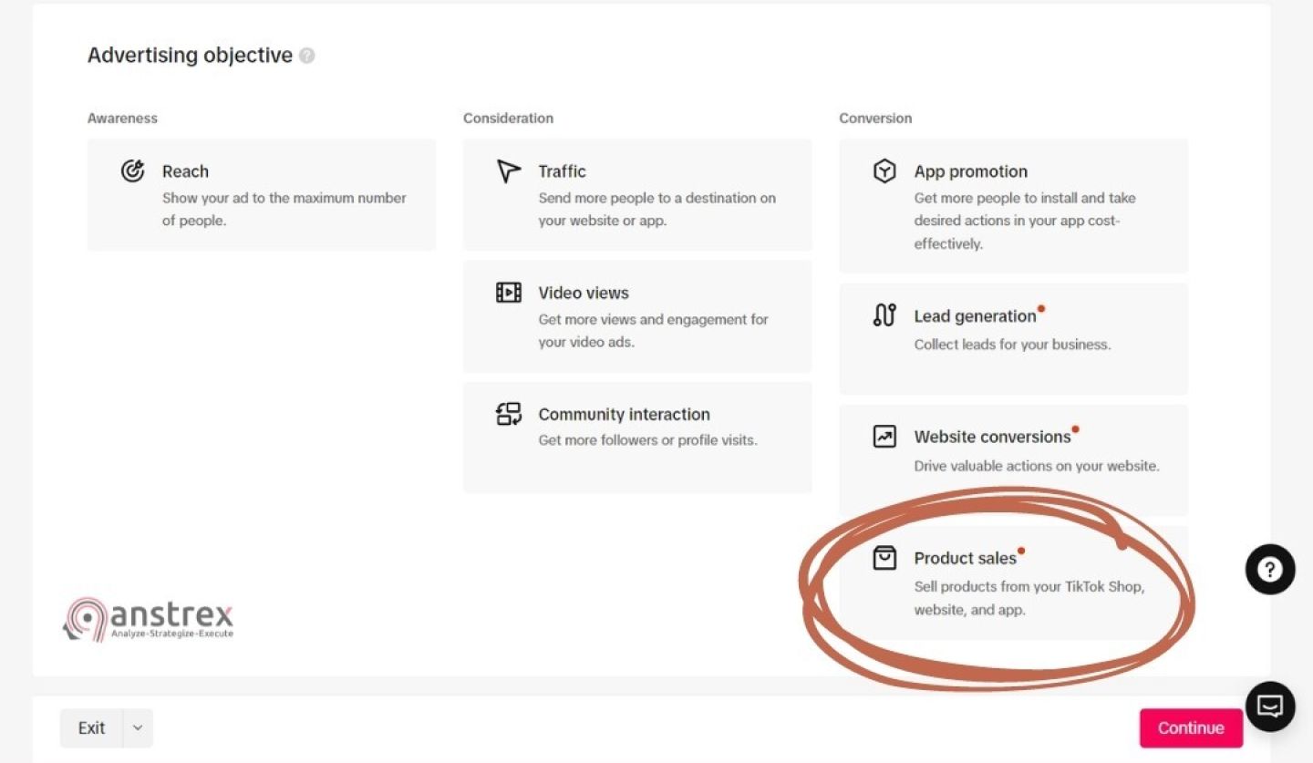 Шаг 5: Создайте новую кампанию в TikTok Ads Manager и выберите Продажа товаров. Выберите источник — Каталог или TikTok Shop (в зависимости от вашей ситуации).