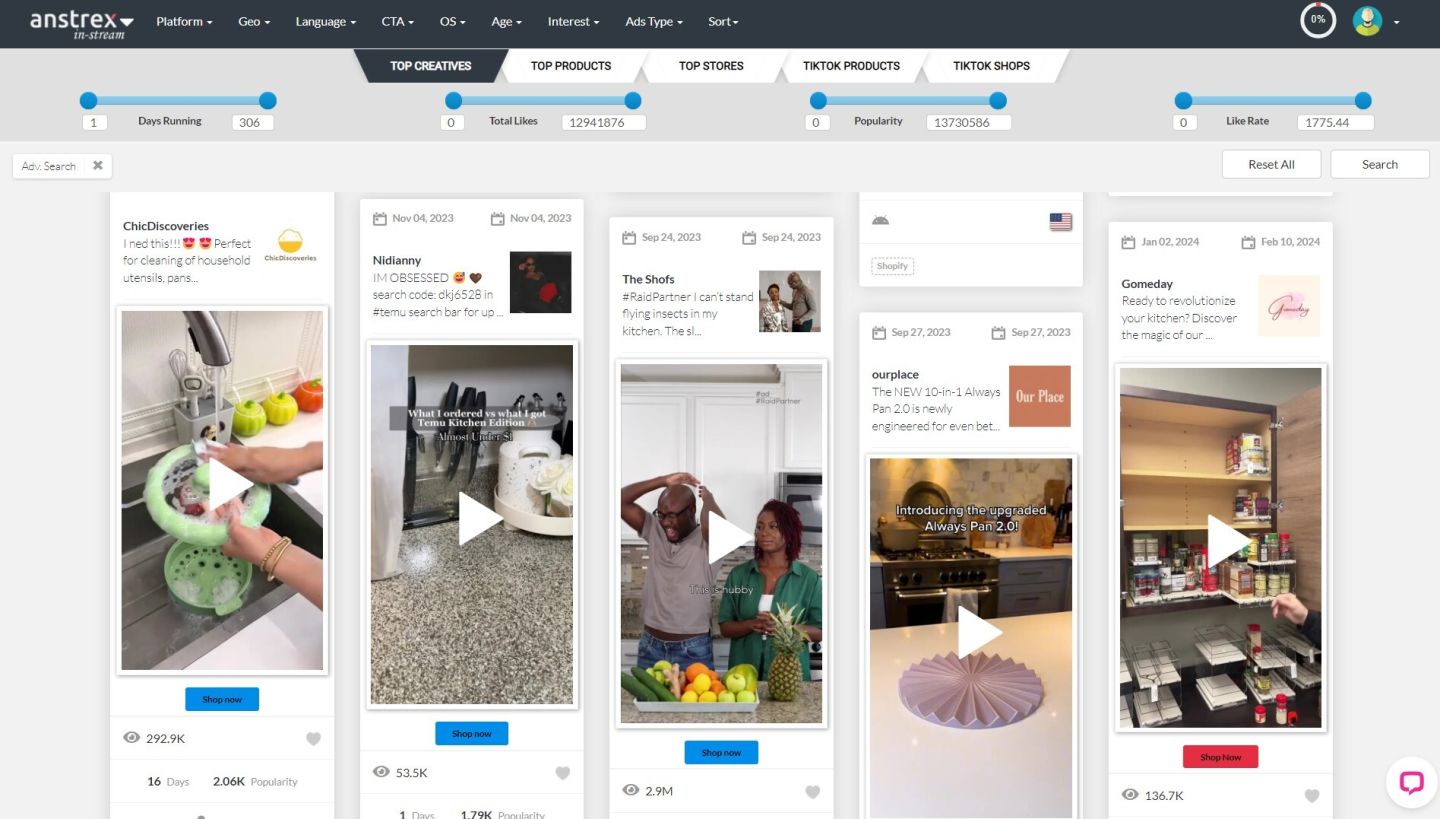 С помощью Anstrex In-Stream мы определили высокоэффективную рекламу в конкретных нишах электронной коммерции. Под каждым примером мы расскажем о стратегиях, применённых в этих рекламных объявлениях, которые способствовали их успеху. Чтобы вы могли воспроизвести поиск и найти подходящую рекламу для своих нужд, мы опишем шаги, которые мы предприняли.