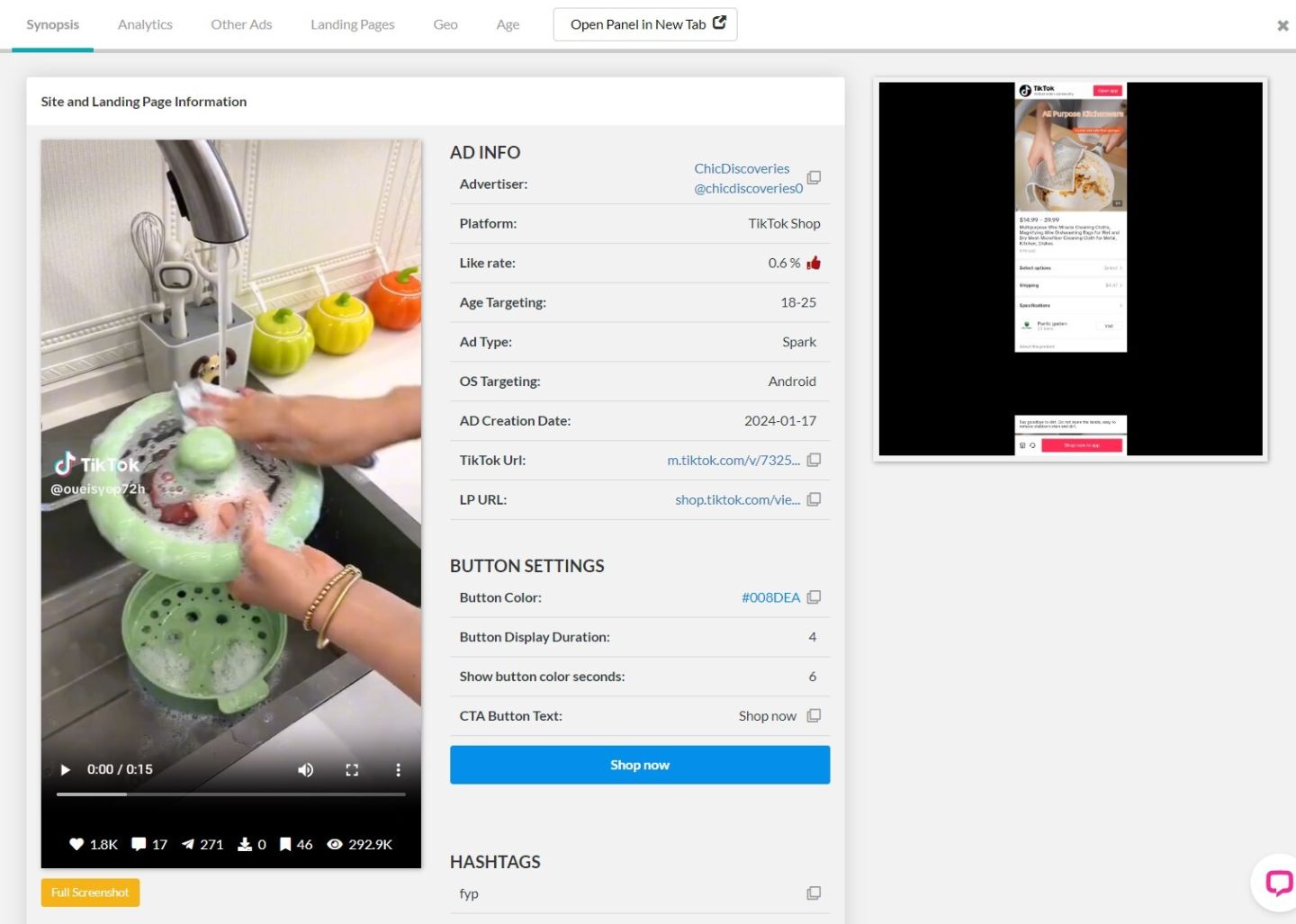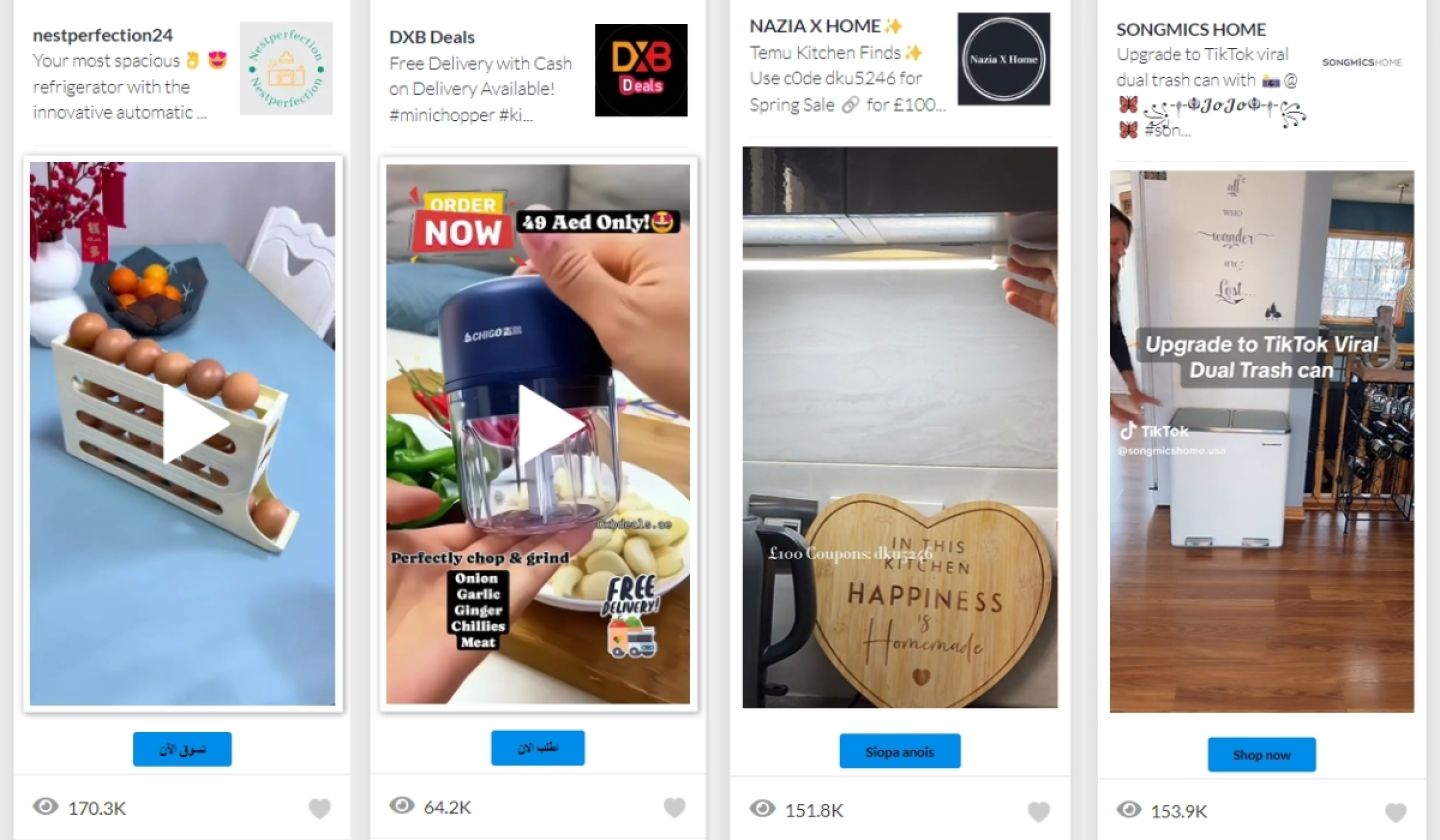 Это реклама Spark (узнайте больше о рекламе Spark и других типах рекламы в TikTok здесь), и за 18 дней она набрала более 292 тысяч просмотров. Если вы посмотрите на хэштеги, которые использовал рекламодатель, вы увидите «kitchenhacks», что может быть отличным ключевым словом для поиска другой вирусной кухонной утвари.