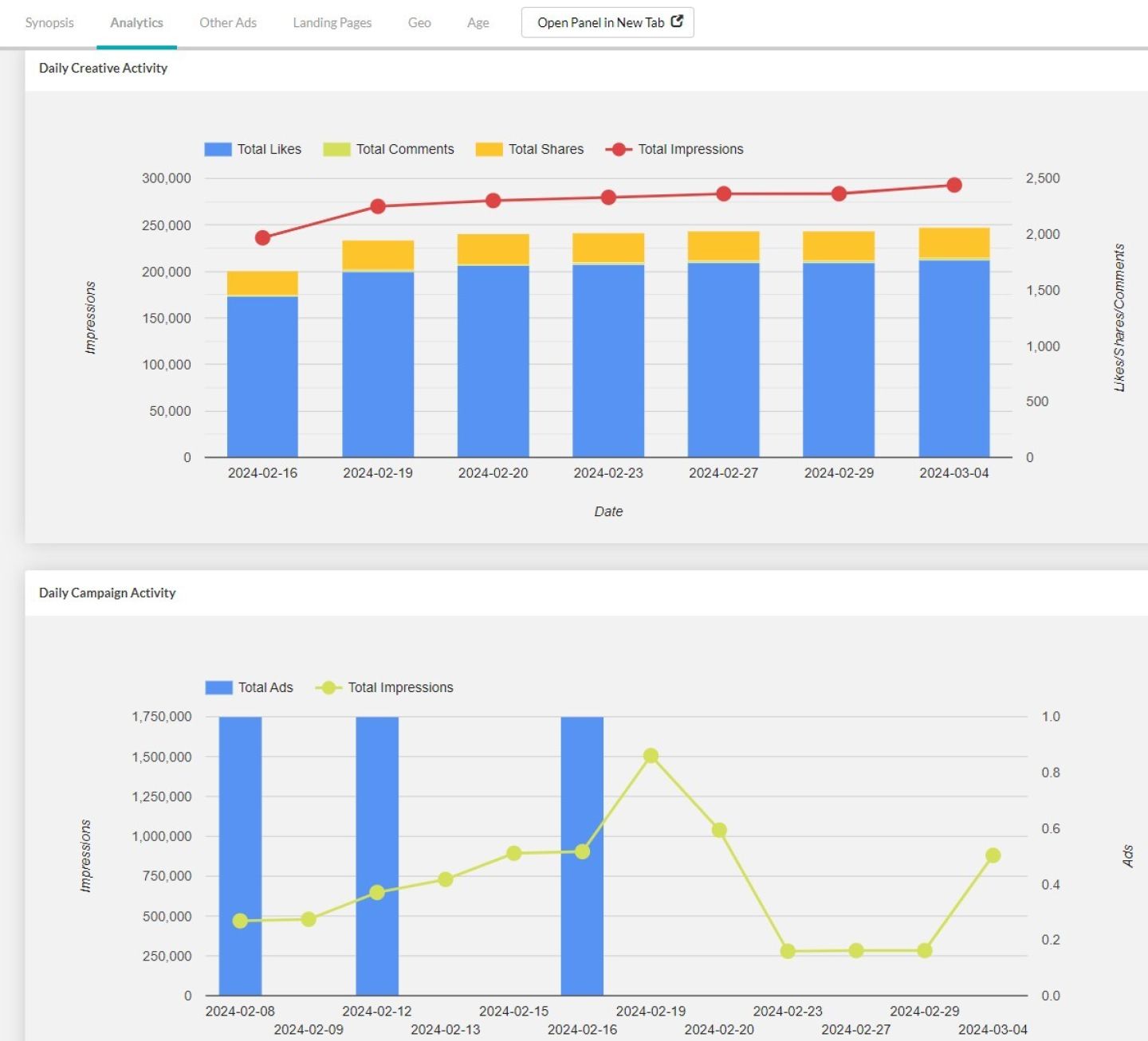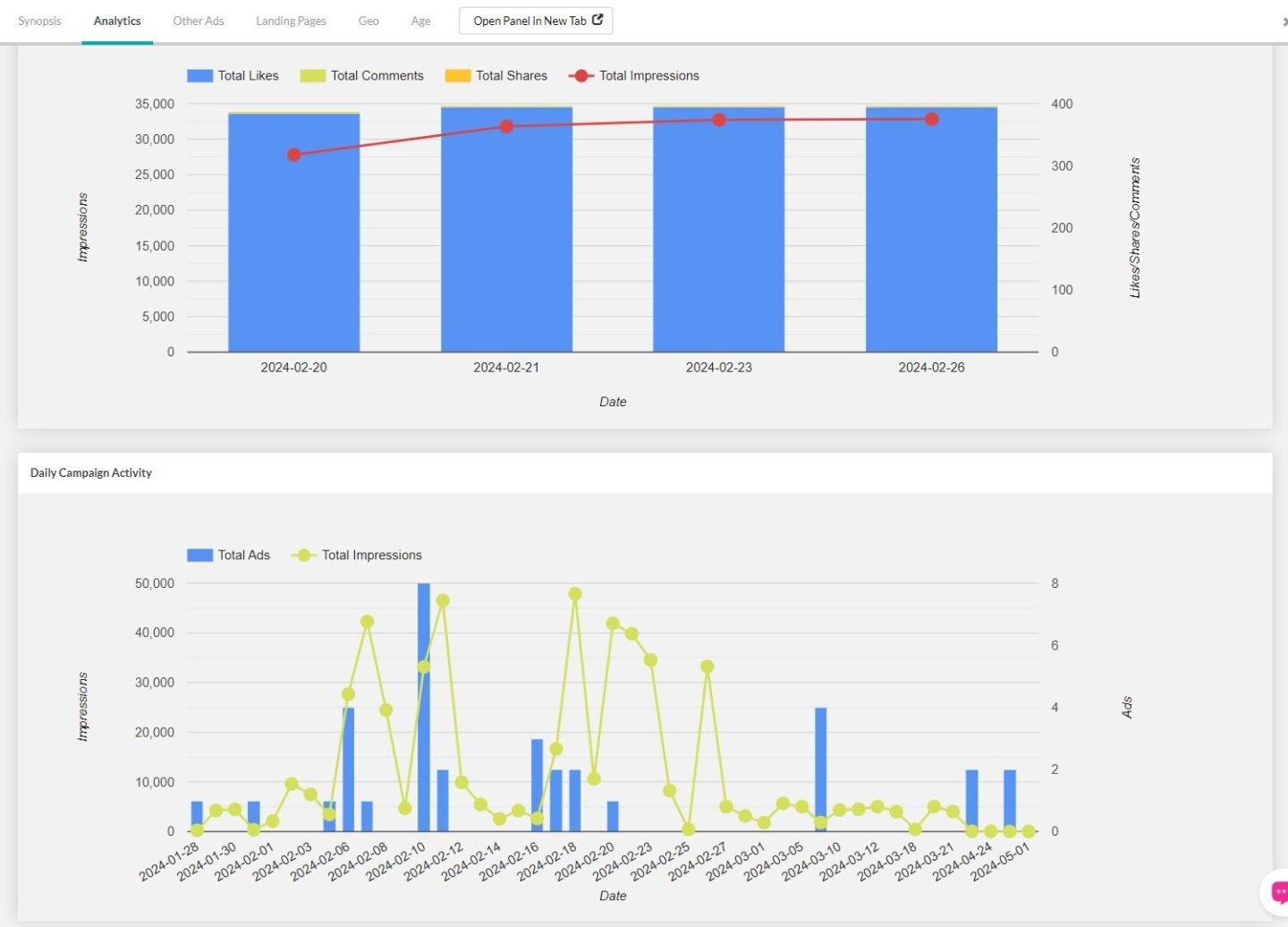 Несмотря на то, что количество показов сначала снизилось, а затем снова выросло, очевидно, что теперь, когда реклама набрала достаточный импульс, рекламодатель может приостановить рекламу и позволить естественным репостам и просмотрам делать свою работу.
