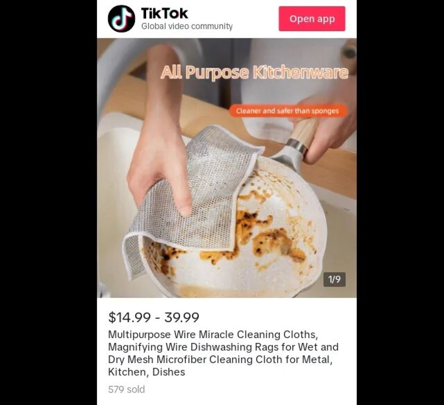 Рекламодатель использует TikTok Shop в качестве платформы для электронной коммерции. Они называют товар Многоцелевой очистительной тканью из проволоки.