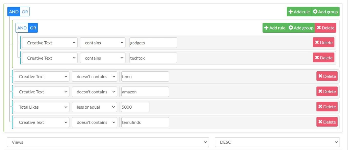 Теперь, чтобы найти вирусные технические гаджеты, мы снова используем свой шпионский инструмент. Мы сужаем поиск с помощью следующих настроек: