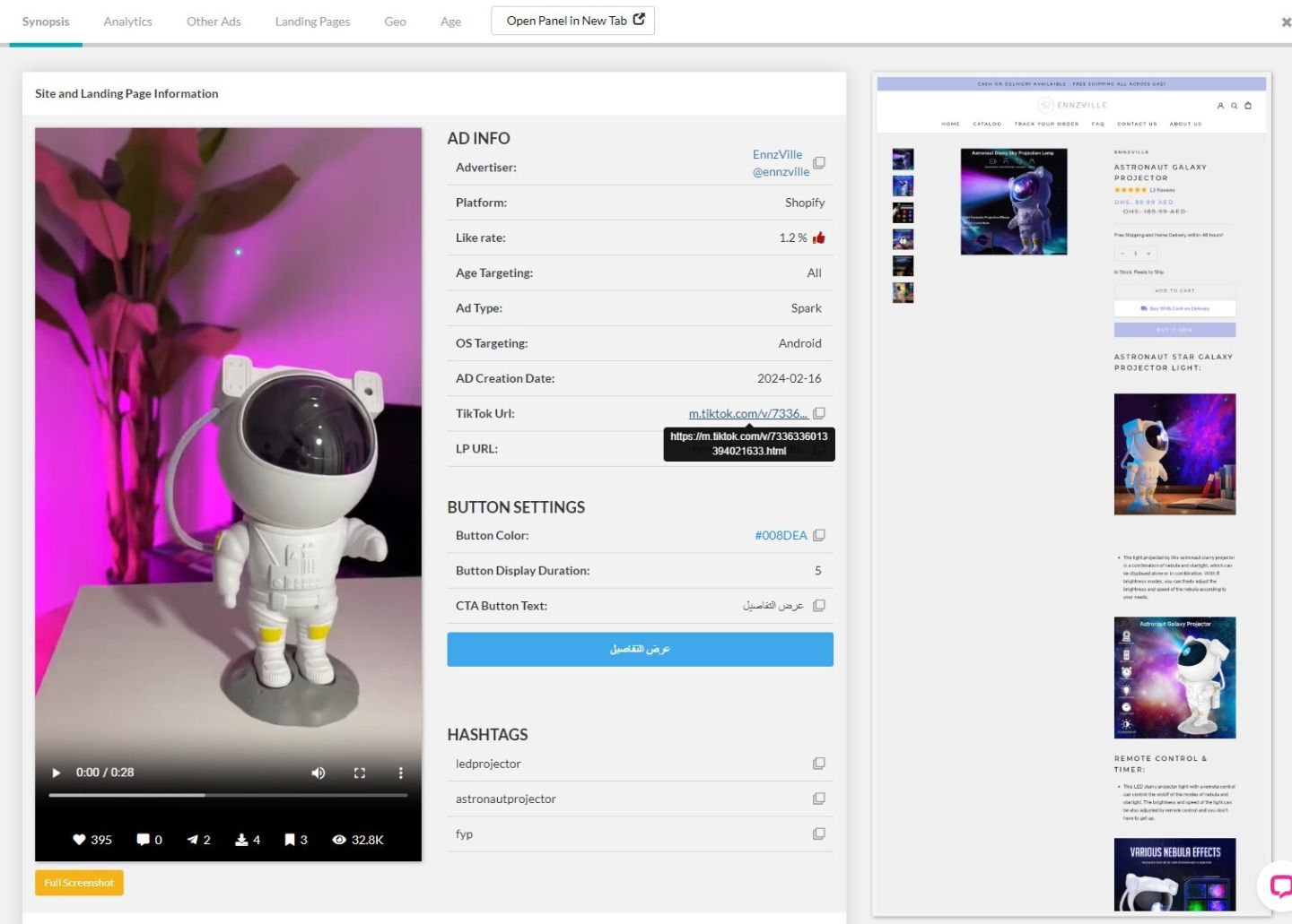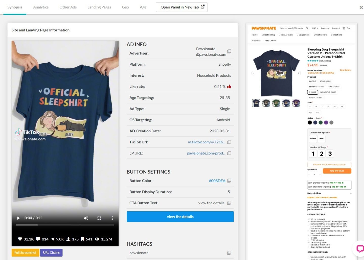 Также у него довольно высокий коэффициент лайков — 1,2%, учитывая, что большинство товаров в сфере электронной коммерции имеют менее 1%. Проверив страницу аналитики, мы видим хорошую эффективность рекламы на протяжении всего периода ее действия.