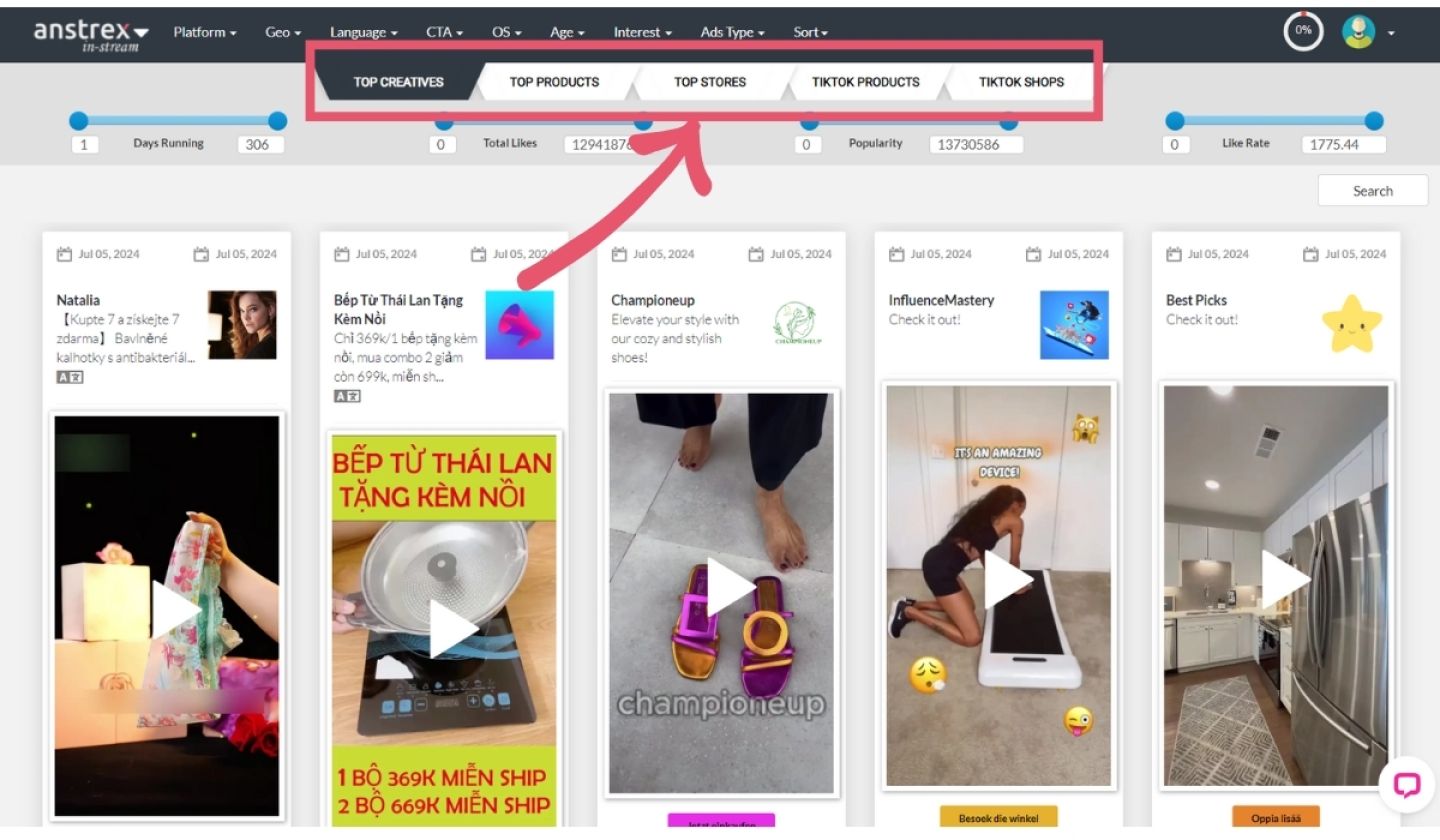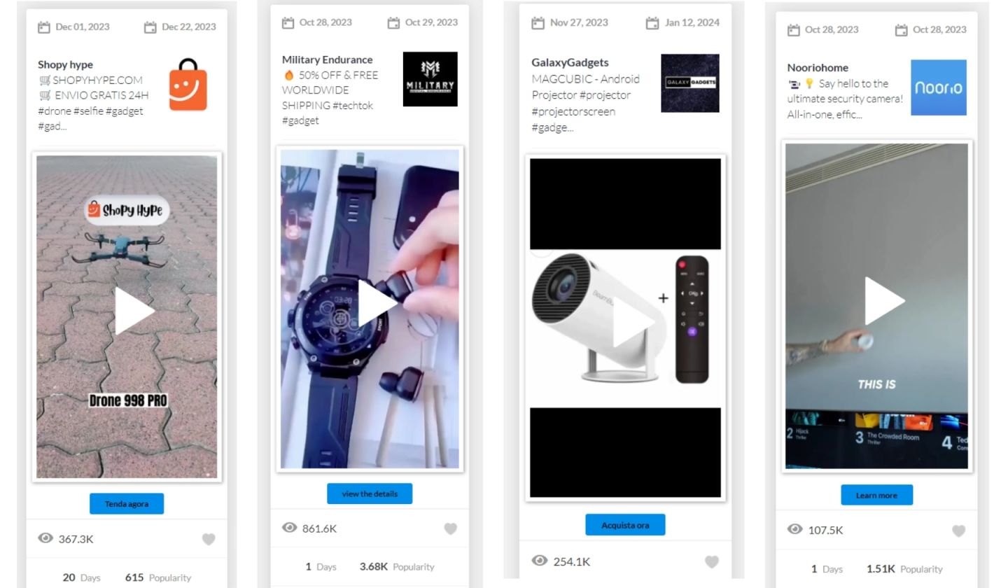 Наши инструменты отслеживают миллионы TikTok-объявлений из более чем 55 стран. Крупнейшая библиотека TikTok-рекламы в сфере e-commerce и мобильных приложений!