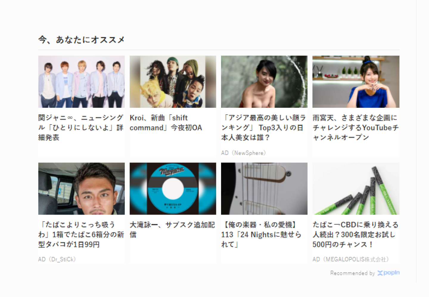 PopIn — еще одна сеть нативной рекламы, ориентированная на японскую аудиторию. Основанная в 2008 году, компания сотрудничает с местными научными кругами, взаимодействуя с Токийским университетом. Несмотря на то, что компания слилась с Baidu в 2015 году, она продолжает работать самостоятельно.
