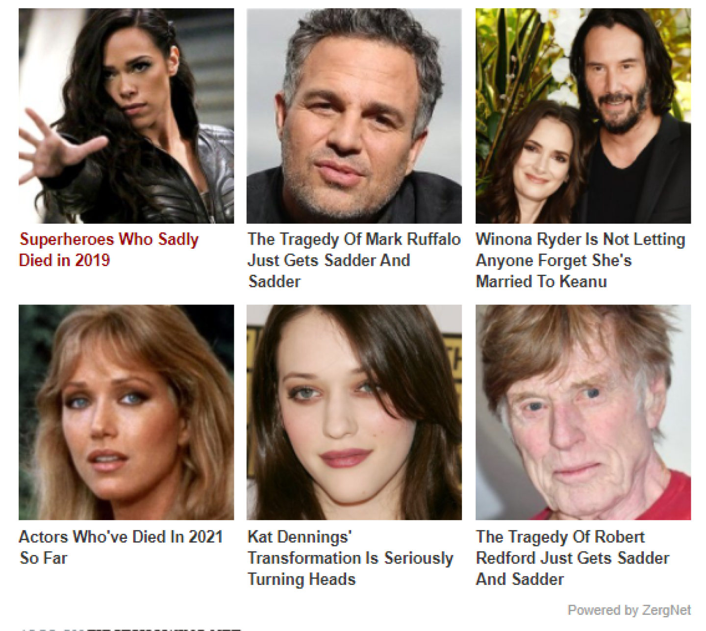 Zergnet — это компания, занимающаяся нативной рекламой, специализирующаяся исключительно на рекомендациях контента. Они помогают издателям расширять свою аудиторию, направляя бесплатный трафик при условии, что у издателя есть увлекательный контент, побуждающий пользователей читать дальше.